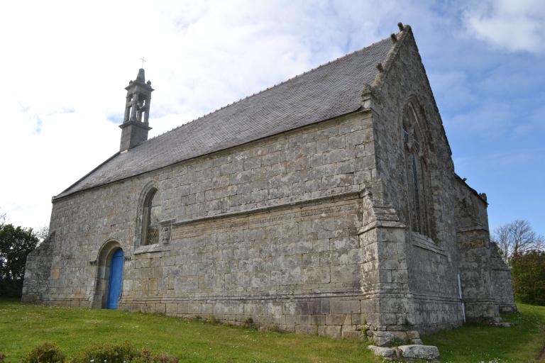 Cette longue inscription sur la façade sud de la chapelle nous apprend la date de construction de l’édifice : 1538. Sur le même mur se trouve une autre inscription : Y. GOARDON 1620. Sur une sablière intérieure, on lit : « LAN MIL VC LIII HENRI MICHELET : FABRIC ».