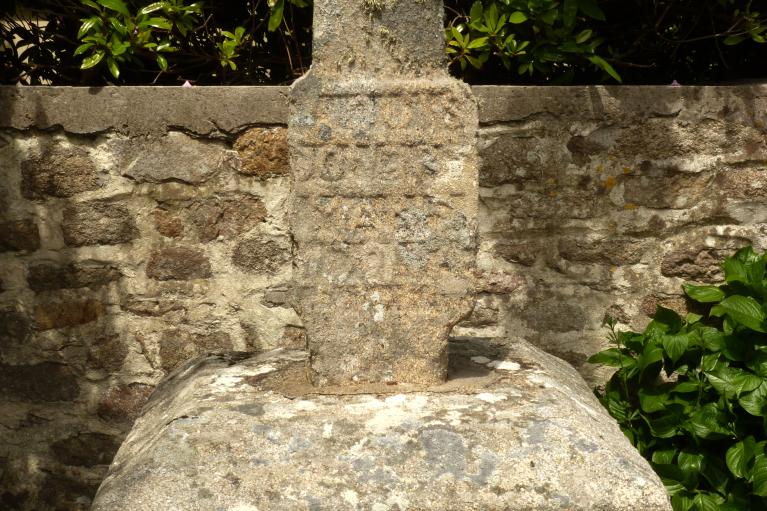 Deux dates ont été observées par Y.P. Castel et les enquêteurs de l’Inventaire général : Le premier a relevé la date de 1653 sur le socle tandis que les seconds celle de 1833 sous le croisillon (restauration ?). En 2019, ces dates sont presque illisibles du fait de l’érosion, contrairement à l’inscription portée à la base du fût : LOUIS / DONART / MARIE / DANZE.