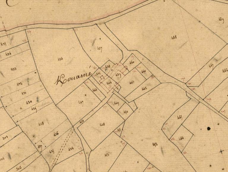 Si le cadastre napoléonien signale bien les bâtiments en 1837, il n’est plus question d’un manoir ni sur les plans, ni dans les états de sections. A cette date l’ensemble appartient à Joseph Le Lay, notaire et le manoir et ses bâtiments annexes présentent une disposition très proche de celle qui existe aujourd’hui : un logis principal accolé à une écurie et une autre maison, une étable avec crèches à cochons en retour à l’ouest et un fournil isolé à l’est. Les évolutions principales concernant les bâtiments consistent en la création d’une grange qui forme aujourd’hui clôture à l’est de la cour principale et la disparition d’une dépendance accolée au nord du mur d’enceinte sud. On constate également que le bâtiment à l’est de l’alignement principal a été raccourci.
