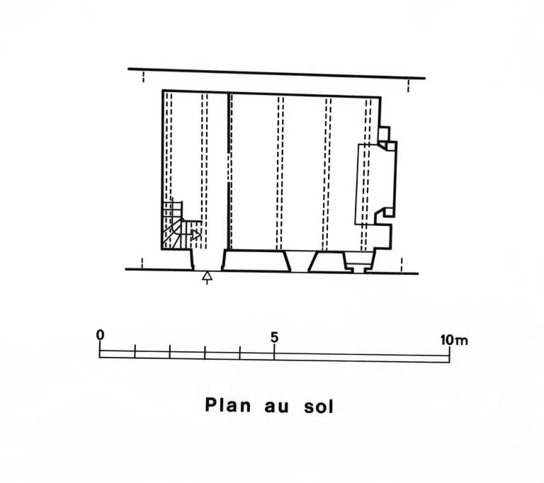 Elle se trouve au centre d'un alignement de trois bâtiments signalés sur le cadastre ancien de 1836 : Deux maison et une crèche accolée à l'est.