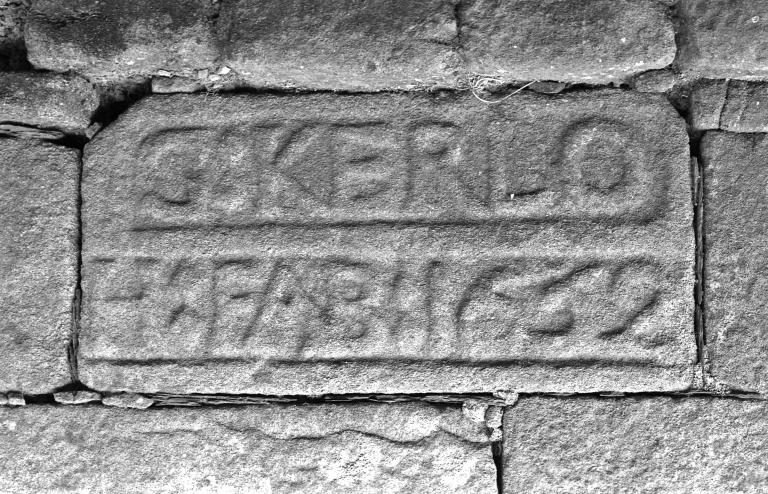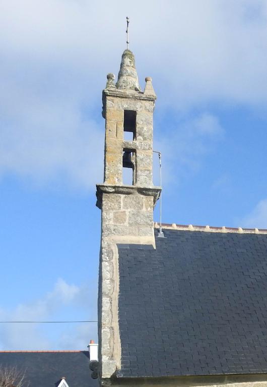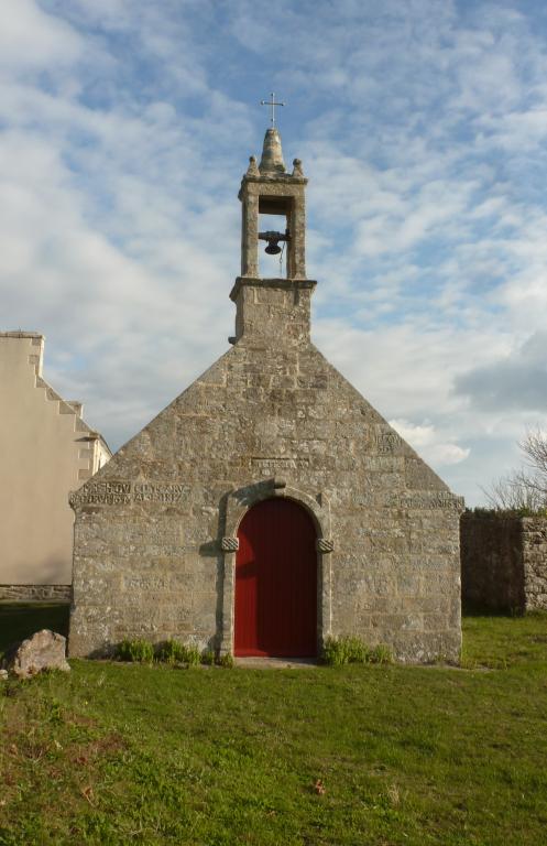 Les autres dates relevées sur l’édifice renvoient au milieu du 17e siècle, soit un siècle et demi environ avant son déplacement : La date de 1648 (probablement celle de sa construction) apparait deux fois sur le pignon ouest. L’une est accompagnée de l’inscription MRE : H : GVI(llou) RECTEUR. Au chevet de la chapelle, une pierre à l’envers porte l’inscription G : KERLOC(‘h) : FAB : 1652.