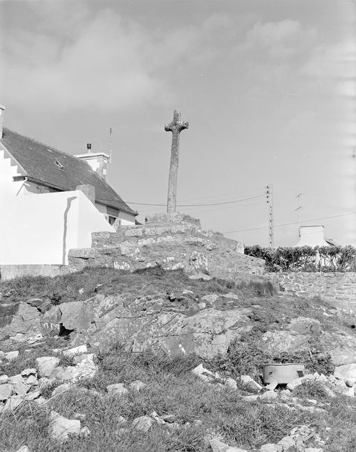 L’inscription "Lescoff, 1960" qui renvoie à une récente restauration de l'édicule est bien visible sur le ciment du socle de la croix. Cependant, la date de 1610 relevée par les enquêteurs de l’Inventaire Général en 1977 n’a pas été observée en 2019.