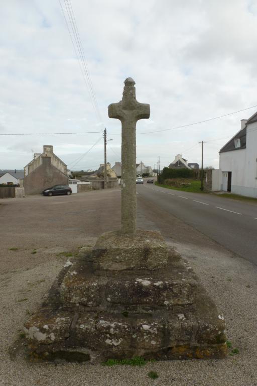Située sur une petite place en bordure de la D784, à l’entrée sud du village de Kerherneau, cette croix repose sur un socle carré dont les arrêtes supérieures sont chanfreinées.