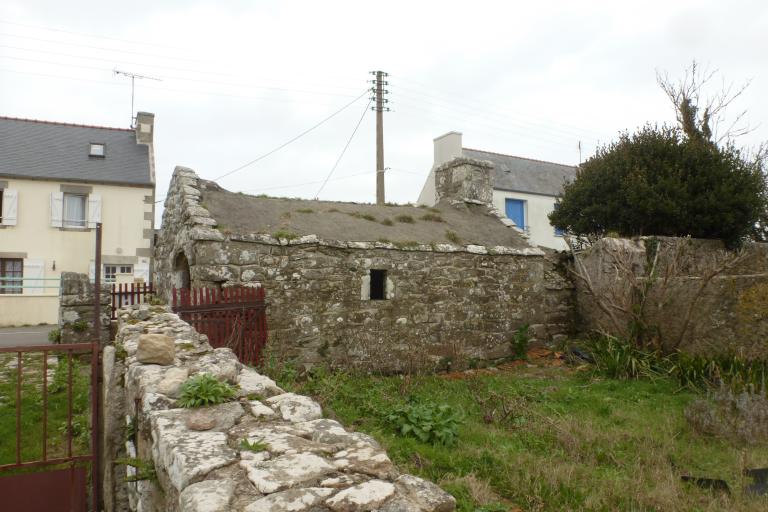 Située à l’extrémité ouest de la commune de Plogoff, au cœur de l’important village de Lescoff, cette ancienne ferme aux nombreuses dépendances est établie dans une zone où la densité de l’habitat est élevée. Du fait de son implantation entre la départementale menant à la pointe du Raz et l’ancienne rue principale du village aujourd’hui baptisée « rue des hirondelles », deux accès sont possibles pour atteindre les bâtiments : l’entrée principale se trouve au sud, côté rue des hirondelles, et une entrée secondaire a été aménagée au nord, près du four à pain. On observe d’ailleurs un porche d’entrée très soigné aménagé sur la façade postérieure du logis. Celui-ci, maçonné en pierres de taille, présente une croix en granite sur son pignon.