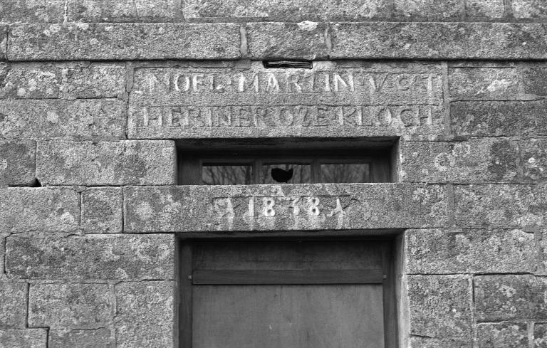 Cette importante ferme a appartenu à la famille MARZIN, comme l’indiquent les différentes inscriptions visibles sur l’alignement logis-écurie : NOEL MARZIN. V. CATHERINE ROZE K(er)LOCH sur le linteau de la porte d’entrée, HENRI MARZIN et MARIE ANNE BLEAUMELIN sur les fenêtres du rez-de-chaussée, GUILLAUME MARZIN sur une fenêtre à l’étage et NOEL MARZIN sur l’écurie. Le sigle religieux IHS est également gravé sur l’une des fenêtres de l’étage.