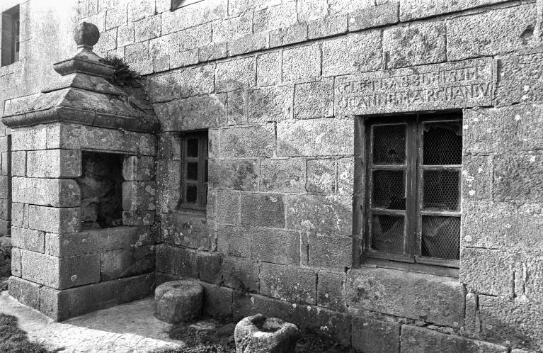 Les inscriptions présentes sur les linteaux du logis précisent les noms des bâtisseurs et de leur fils : JEAN M LASBLEIS et M JEANNE MARCHAND (porte d’entrée) et CLET LASBLEIS FILS (fenêtre est).