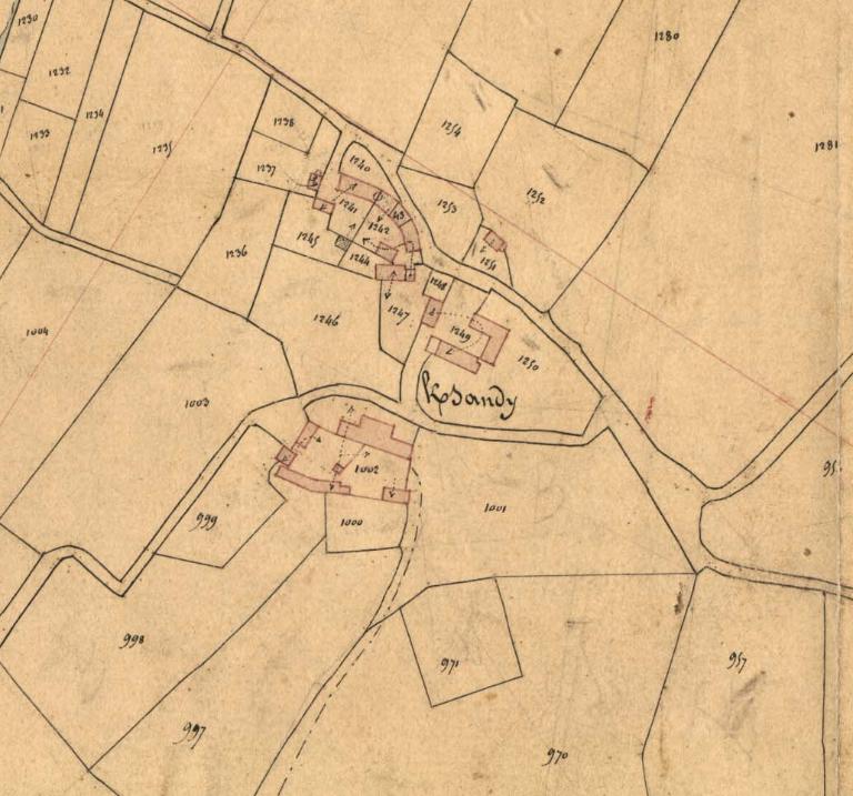 L’inventaire réalisé après le décès de ce dernier énumère les bâtiments du manoir de Kersandy en 1871 : Une maison principale, une autre maison, deux étables, une crèche pour les veaux, une crèche à cochons, une bergerie, un hangar et un fournil.