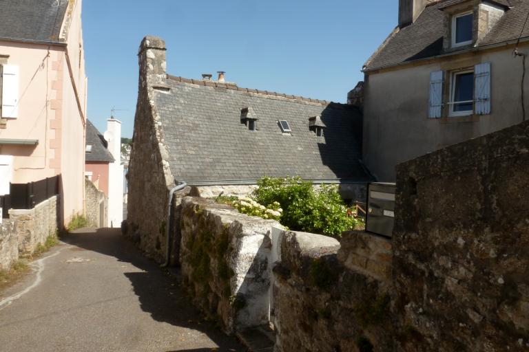 Située dans la partie nord du village de Poulgoazec, côté est de l’actuelle rue de Guervian, la maison étudiée, nichée dans une déclivité du terrain, tourne le dos au port tout proche.