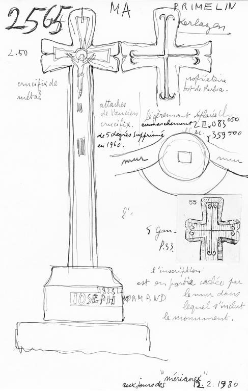 La date de 1825 portée sur le socle de l’édicule et accompagnée du nom de Joseph Normand renvoie donc à une restauration.