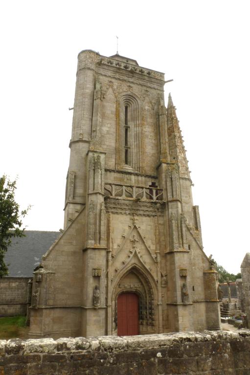 Érige à l’emplacement d’une chapelle plus ancienne mentionnée dès 1118, l’édifice actuel a été bâti entre 1530 et 1550 à l’initiative de René du Menez, seigneur de Lezurec en Primelin, et son épouse, Marie du Fou. Les inscriptions datées 1584 (dans la chambre des cloches) et 1593 (dans la pièce nord de la tour, dite « la prison ») signaleraient donc de probables réparations.