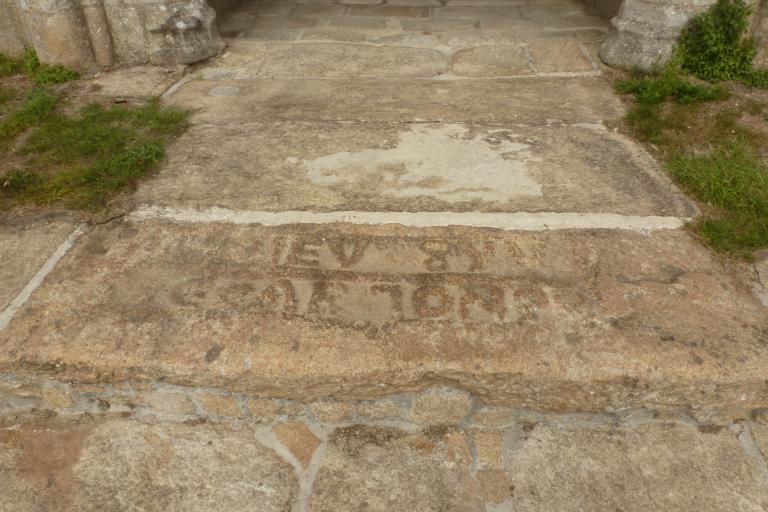 Notons que le menhir situé près du porche sud se trouvait autrefois intégré dans l’angle sud-est du mur d’enceinte de l’ancien cimetière. Lorsque celui-ci a été démoli, le menhir, brisé en deux, a été récupéré et déplacé à son emplacement actuel après restauration.