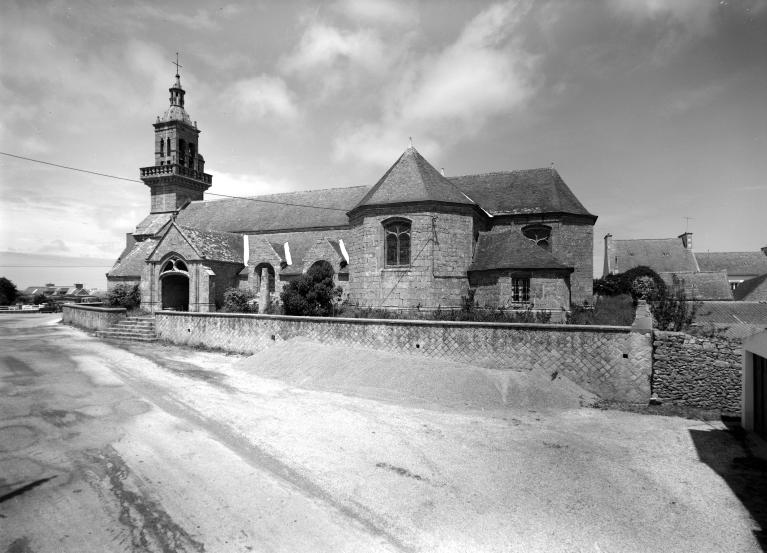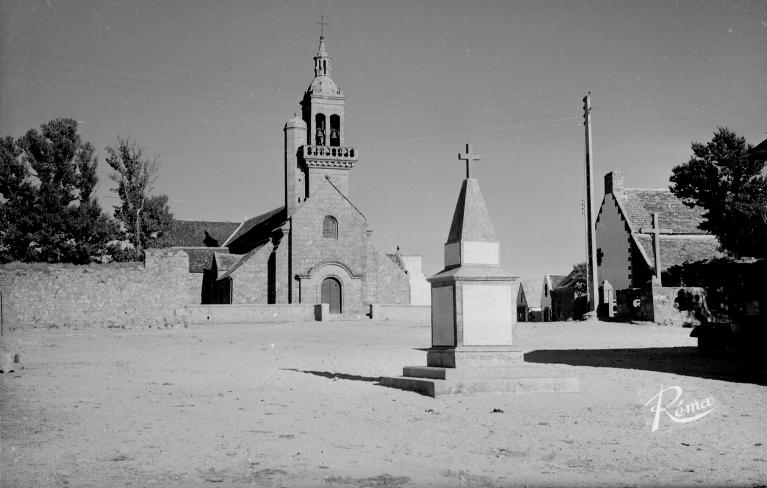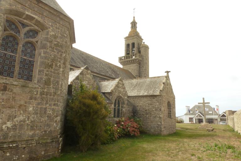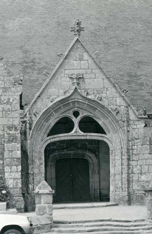 L’édifice actuel date de la seconde moitié du 18e siècle (dates portées : 1773 sur le bras sud et 1776 sur le clocher). Le nom du recteur de l’époque, Jean-Guy Le Jadé apparait sur les deux bras du transept.