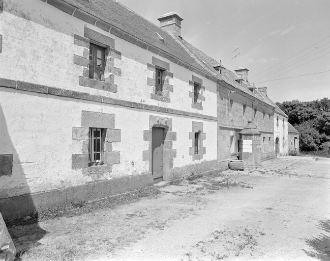 Cette importante ferme de Primelin est signalée sur le cadastre de 1837 avec une disposition des bâtiments très proche de celle qu’on peut observer en 2019. Ces bâtiments, nombreux, portent des dates renvoyant à une période allant du milieu du 18e au milieu du 19e siècle.