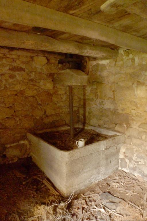 Certains témoins de ces activités sont toujours visibles sur place : Au rez-de-chaussée se trouvent un pressoir en ciment et un grand charnier en granite monolithe. Quant au « bib » (cuve en pierres de taille utilisée pour laver le linge), il a été récemment démonté, laissant une trace au sol à gauche de la cheminée. Notons que le charnier est plus large que la porte. Il a probablement été installé lors de la construction de la maison.