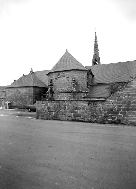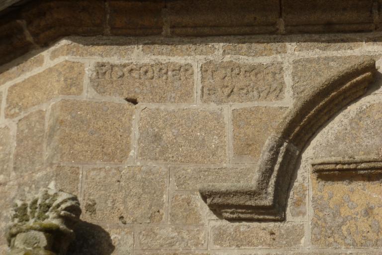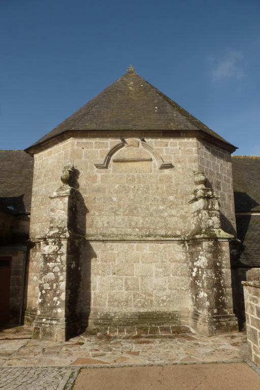 Dans l’enclos de l’église, près du porche sud, se trouve une haute croix monumentale en Kersanton. Récemment tournée vers le sud, elle porte un croisillon représentant un crucifix sous lequel se trouve l’inscription : « Mission 1868 ».