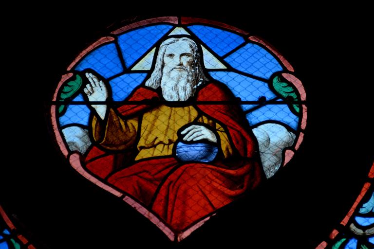 Le sujet de la verrière renvoie au Vœu national, promesse d’érection de la basilique Sacré-Cœur à Paris après la défaite de 1871 qui s’inscrit dans la tradition de vœux royaux comme autant de pactes divins pour sauver la France. Positionné au-dessus d’un autel également dédié au Sacré-Cœur, le cœur (entouré de la couronne d’épines, cerclé de lumière…) est figuré sur la poitrine du Christ et apparait à trois autre reprises, comme attribut tenu par les personnages présents.
