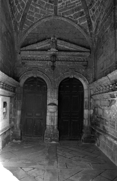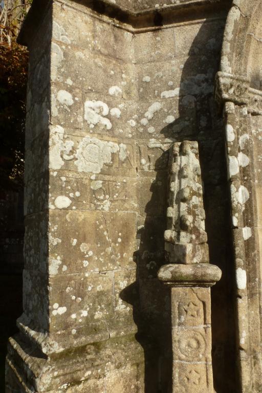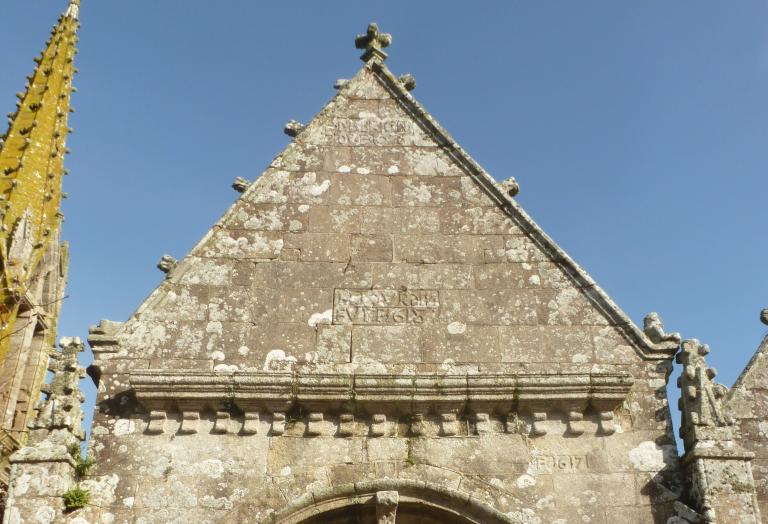 L’entrée ouest présente les mêmes caractères architecturaux qu’à Cleden-Cap-Sizun, Plogoff ou Saint-Tugen en Primelin, à savoir une porte en anse de panier surmontée d’un arc ogival.