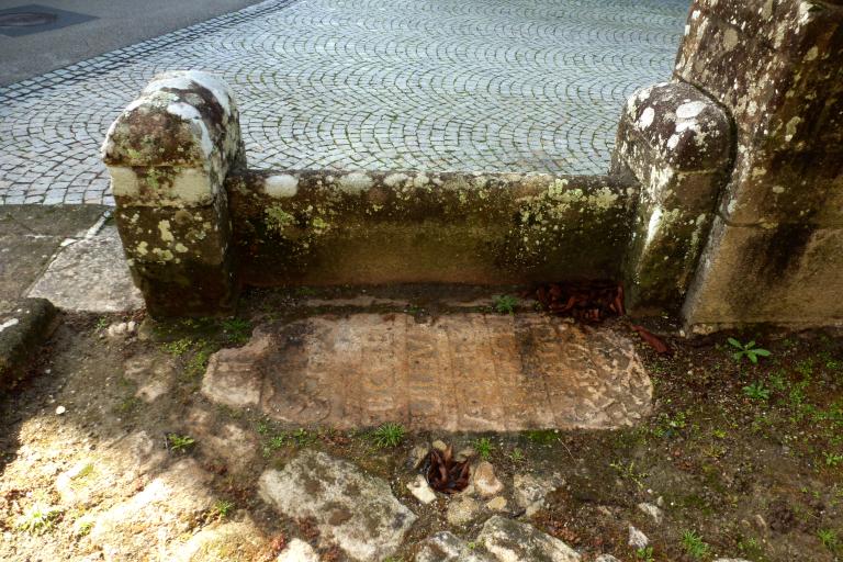 Située en plein cœur du bourg d’Esquibien, l’église paroissiale Saint-Onneau se dresse dans un enclos entouré d’un petit muret partiellement détruit. L’entrée de l’ancien cimetière, côté sud, se fait par un petit arc de triomphe en ogive moulurée qui porte aujourd’hui les noms des Esquibiennois tombés pour la France entre 1914 et 1918. A ses côtés, on peut observer un échalier derrière lequel se trouve une pierre tombale en réemploi intégrée au dallage.