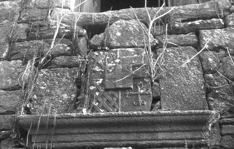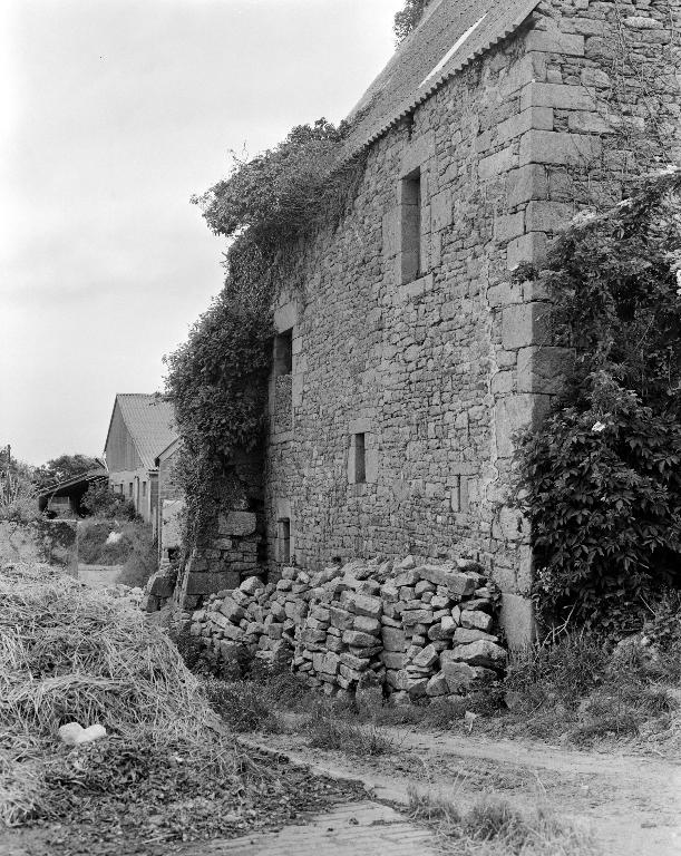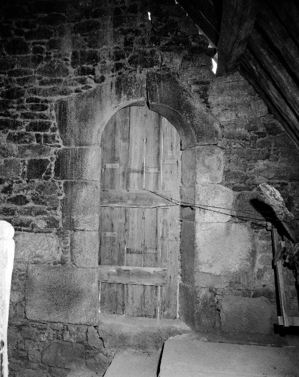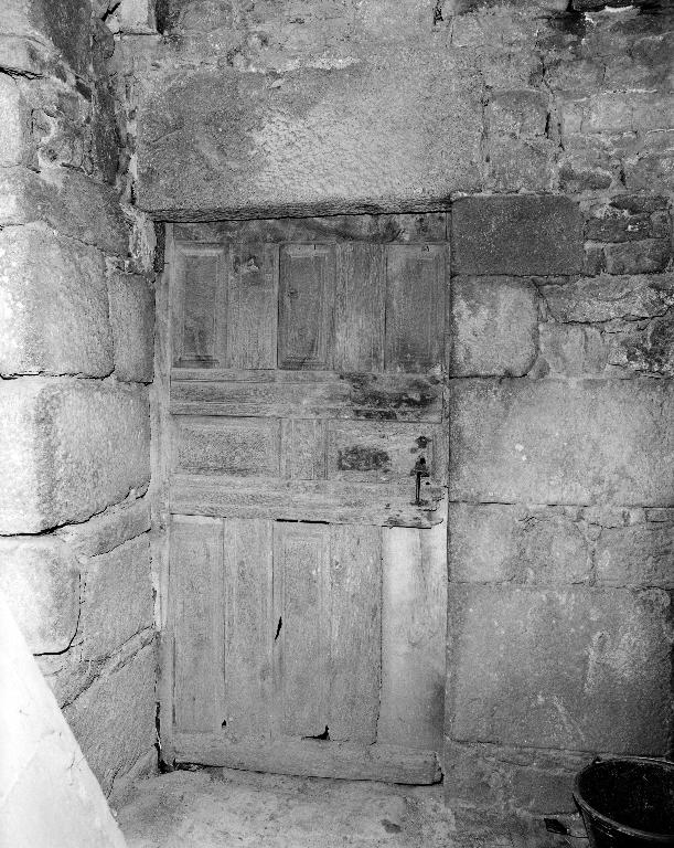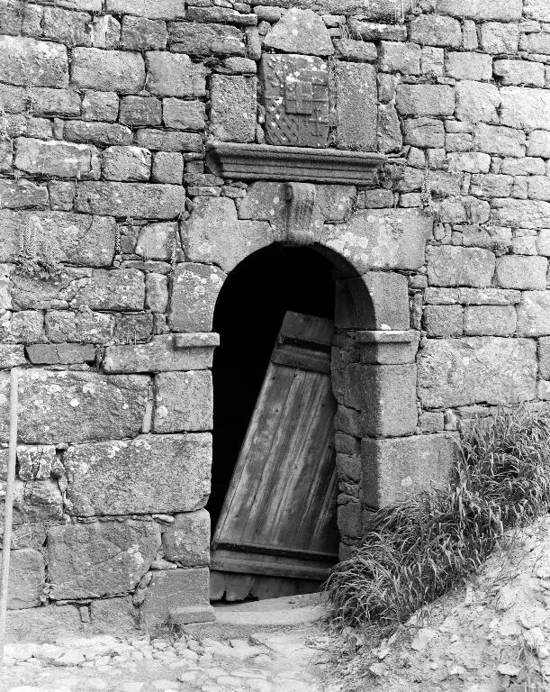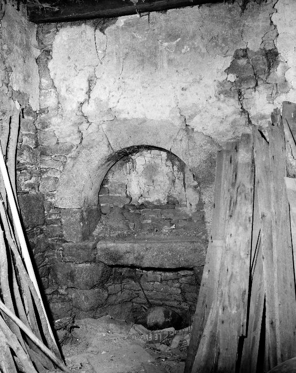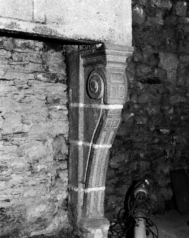 - Escalier : marches monolithes en granite ; palier en blocs monolithes perpendiculaires aux marches. Sur le premier palier, une console pouvait supporter un flambeau pour éclairer l'escalier. Sous les première et deuxième volées est aménagé un cellier (C) donnant sur les deux pièces A et B et dans lequel on trouve encore un saloir à double cuve.