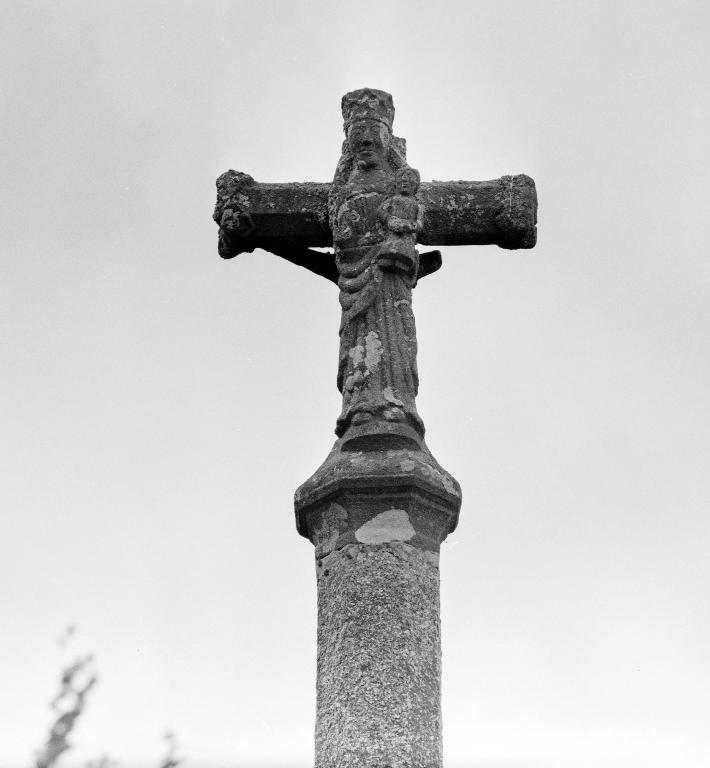 Croix portant l'inscription. Yvon.. l'an mil V IX ; sur une plaque de schiste : mission 1960.