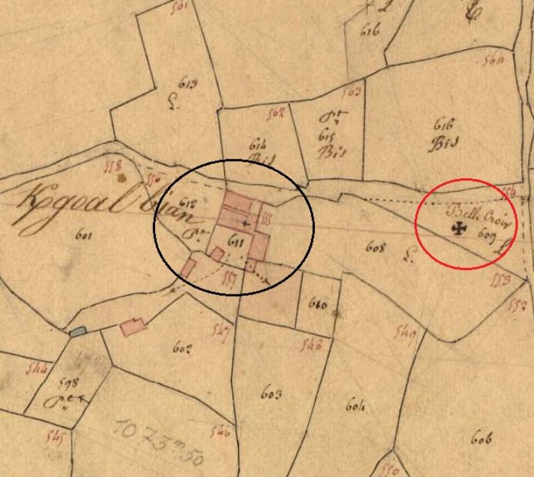 Plouescat. Cadastre napoléonien, section B du Gorré. Levée par M. Grillot, géomètre, 1837, échelle 1/2500 e.