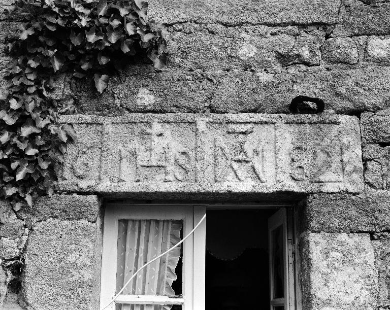 Ferme datée 1682 par l'inscription portée sur le linteau de la fenêtre du logis : 16 / I.H.S. / A. M. / 82. Le monogramme IHS se traduit : IESUS HOMINUM SALVATOR, soir Jésus Sauveur des Hommes. Le monogramme AM peut être interprété comme : AVE MARIA.