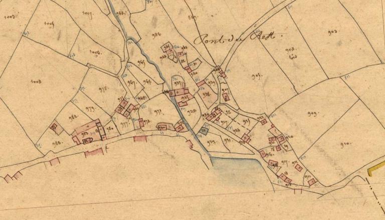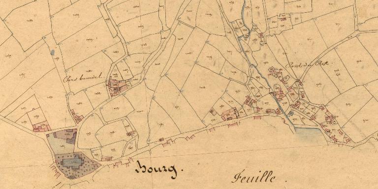 Plounévez-Lochrist. Cadastre napoléonien, section H3 du bourg. Levée par M. Touzé, géomètre, 1837, échelle 1/2500 e.
