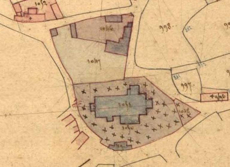 Plounévez-Lochrist. Cadastre napoléonien, section H2 du bourg. Levée par M. Touzé, géomètre, 1837, échelle 1/2500 e.
