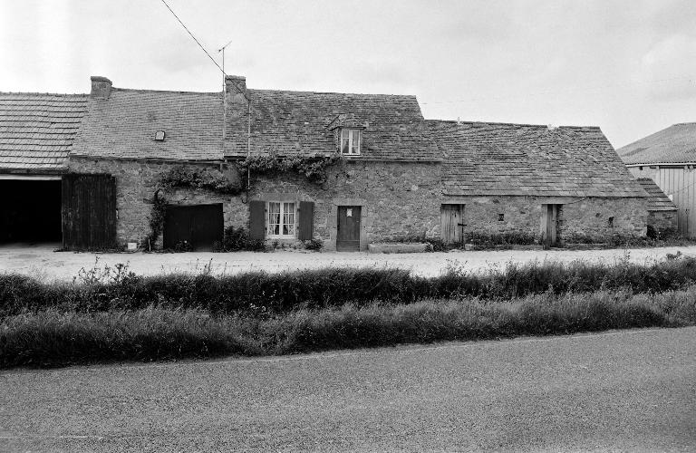Les bâtiments sont disposés en alignement : grange, logis, étable à chevaux, étable à vaches, porcherie, en retrait d’une dizaine de mètres de la route.