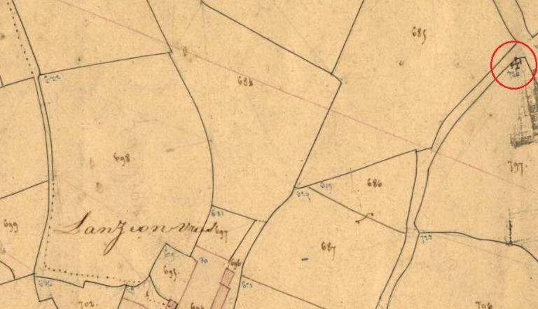 Plounévez-Lochrist. Cadastre napoléonien, section A2 de la Mer. Levée par M. Touzé, géomètre, 1837, échelle 1/2500 e.