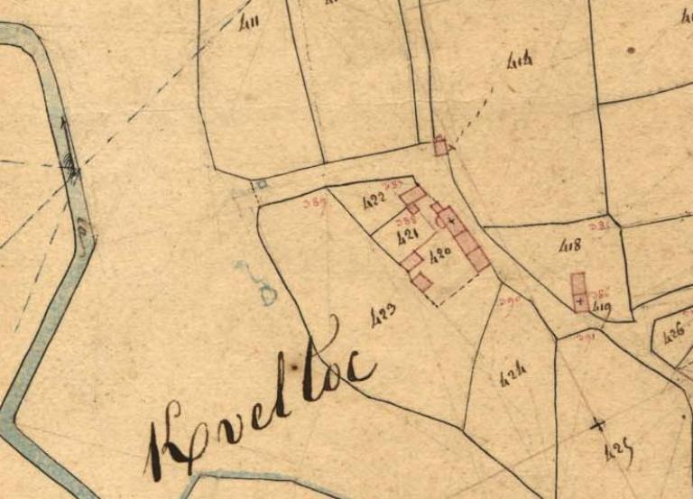 Tréflez. Cadastre napoléonien, section C1 du bourg. Levée par M. Ridel, géomètre, 1836, échelle 1/2500 e.