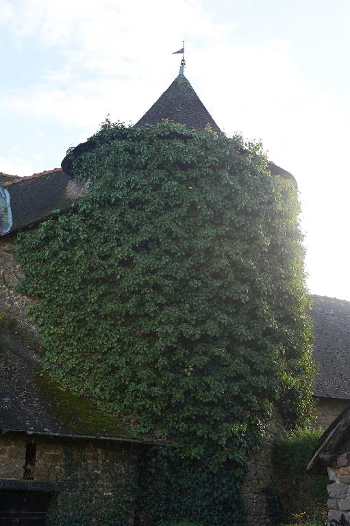 Le toit à deux versants est couvert d'ardoises, il n'y a plus de souche de cheminée. La tourelle a un toit en poivrière, les deux toits sont reliés par un passage couvert d'un petit toit à deux versants. La charpente du logis, en châtaignier avec chevrons et pièces moisées en sapin, est à fermes, arbalétriers, poinçon, poutre servant d'entrait. Le faux-entrait est en moise taillée en échantignolles. La panne-faîtière est liée au poinçon par des aisseliers. L'assemblage est chevillé, les pièces moisées sont boulonnées ; pour la charpente de la tourelle, on trouve deux entraits croisés assemblés à mi-bois. Le poinçon est à tenons et la petite sablière est circulaire.