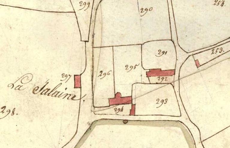 Le manoir de la Jalaine est situé à 1,5 kilomètres au nord-ouest du bourg, sur une butte granitique. On y accède par un chemin long de 200 mètres environ, rejoignant une petite route entre Dompierre-du-Chemin et Parcé. Le manoir est implanté au sud, à contre-pente. Les bâtiments primitifs sont alignés et les dépendances annexes sont autour d'une cour ouverte.
