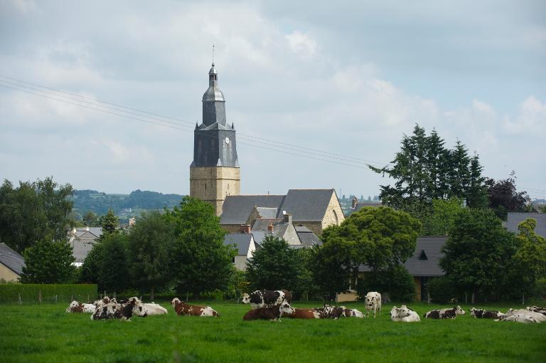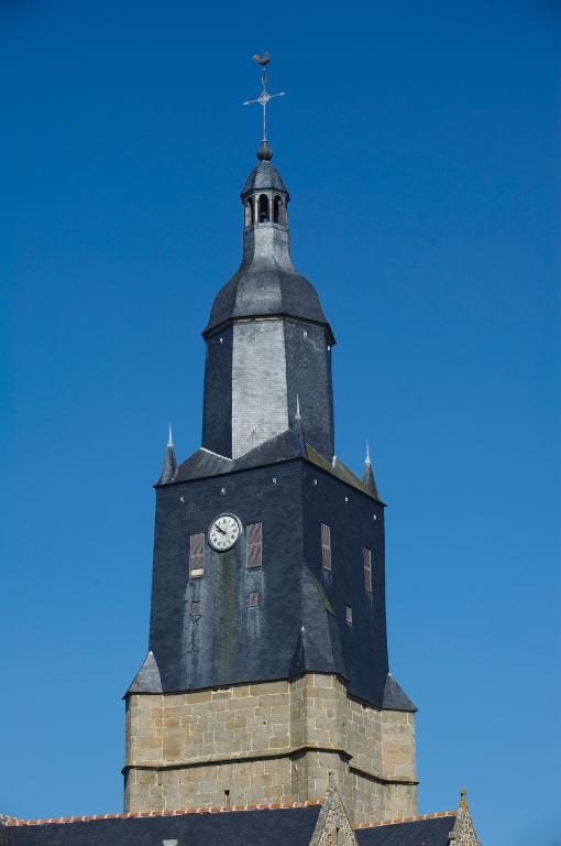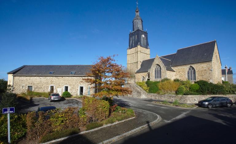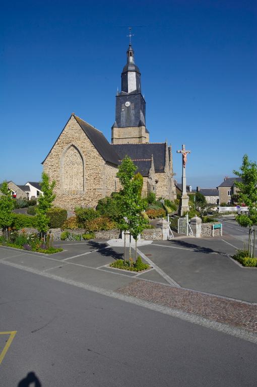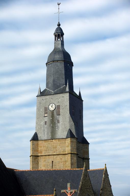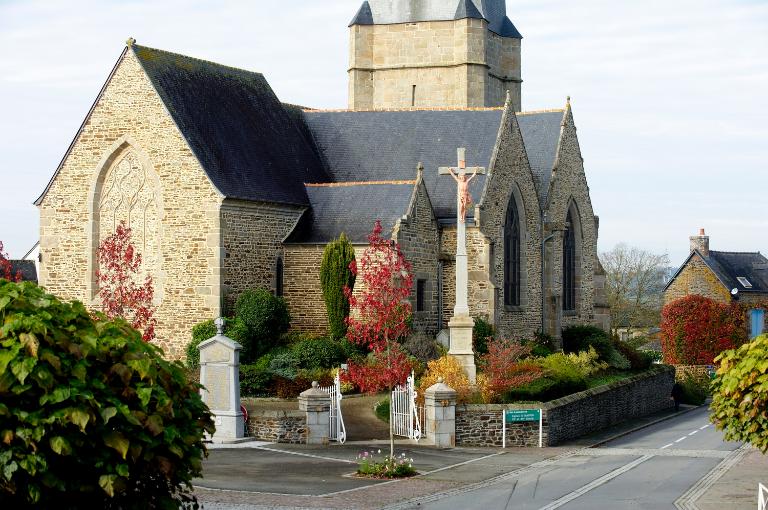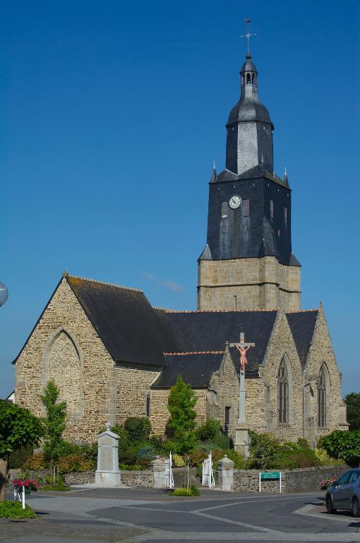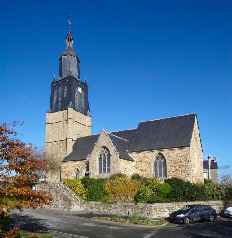 L'église paroissiale est mentionnée au 12e siècle, puis, reconstruite aux 15e et 16e siècles. De la seconde moitié du 15e siècle datent le volume de la nef et du chœur, une ancienne chapelle seigneuriale au nord, devenue sacristie, et deux chapelles accolées au nord, réunies au 16e siècle pour former un collatéral. A partir de 1520 (date portée sur sablière nord de la nef), les grandes arcades, la chapelle et le porche sud sont élevés. De 1544 à 1561, est édifié le clocher-porche de l'ouest. Au cours de cette campagne du 16e siècle, la plupart des baies de l'édifice sont reprises, à l'exception de la baie ouest du collatéral nord. Plusieurs inscriptions sur les sablières et les piles de la nef portent les dates 1520, 1539 et 1544 qui correspondent à cette campagne de travaux à l'initiative de plusieurs familles.