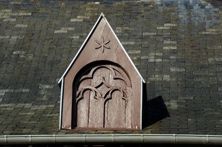 En outre, la chambre, dite auparavant du milieu et maintenant de la galerie, était dépourvu de cheminée. On lui en a fait une en brique dont la tête légère et élégante s’harmonise avec le genre de la construction. Toutes les autres têtes de cheminée sont réparées et prennent une forme agréable. De nombreux travaux de menuiserie et particulièrement des placards sont exécutés à l’intérieur pour faciliter l’ameublement. La grange elle-même (diminuée de l’espace laissé pour un tambour) est revêtue en dehors, à sa façade Sud, d’un solide enduit et de traverses peintes de manière à présenter à l’œil une annexe digne du presbytère. On y adosse une petite serre dont la commodité est fort sensible."