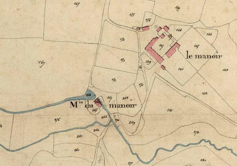 La terre noble est citée dès 1150, elle appartenait à Robert de la Forêt. On le voit ensuite en possession des de Meullant aux 16e et 17 siècles. En 1676 sont cités : le logis, une chapelle, une grange, une écurie, un cellier. L'ancien cadastre de 1820 signale un moulin. En ce lieu existait donc un ensemble manorial assez important, dont ne restent aujourd'hui que quelques vestiges pouvant dater de la deuxième moitié du 16e siècle.