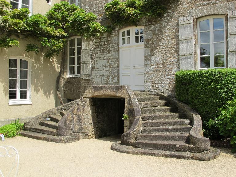 La façade principale aspectée à l'Ouest est percée d'ouvertures en arc segmentaire ordonnées en trois travées suivant l'axe central déterminé par la porte (datée 1783) et l'escalier en U. Plus ouverte, la façade arrière qui donne sur le parc compte cinq travées ; son escalier composé de trois marches est beaucoup plus sobre. A l'Ouest comme à l'Est, les travées sont prolongées au niveau du comble par des lucarnes. A l'intérieur, la distribution est assurée par un escalier tournant (très probablement modifié) qui donne accès à des salles dont les cloisons en bois et torchis ont été conservées.
