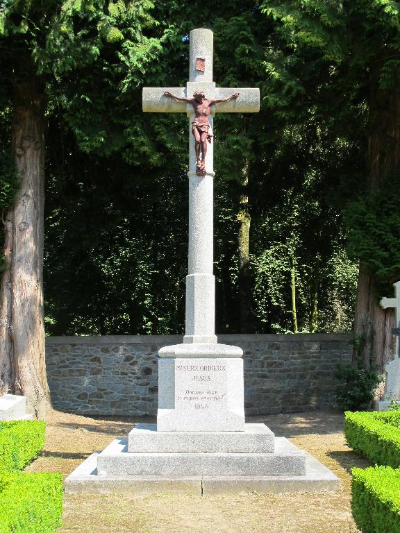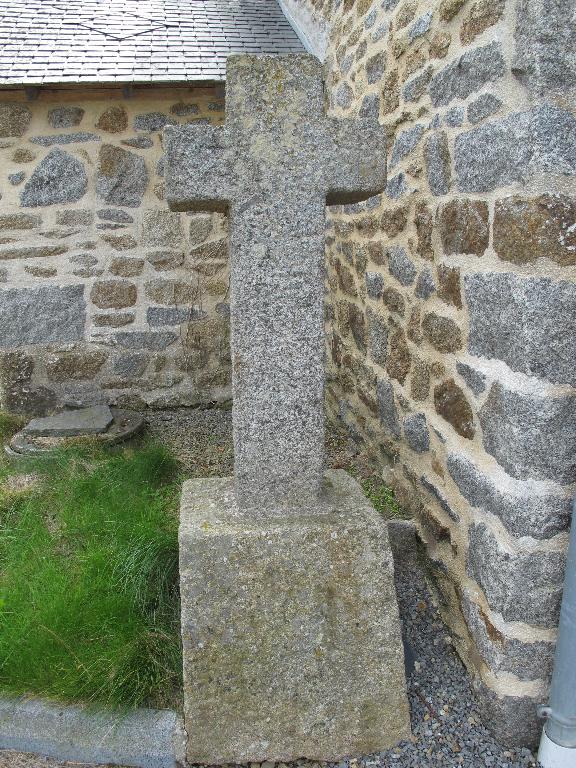 * Croix de l'ancien mur du cimetière : Cette petite croix se trouve sur le mur d'enceinte de l'église au niveau du chœur. C'était le mur du cimetière avant que celui-ci soit déplacé hors du bourg pour des raisons de place et d'hygiène. La croix est en granite monolithe sur un socle carré aux angles arrondis.