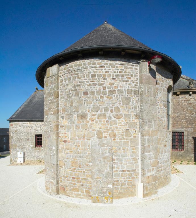 Elle est maçonnée en petit et moyen appareil irrégulier de granite, avec de place en place, quelques moellons de grès et schiste. Les encadrements d'ouvertures, les chaînages d'angles et les contreforts sont en moyen et en grand appareil plus régulier. La toiture est ardoisée et le sol dallé en granite.