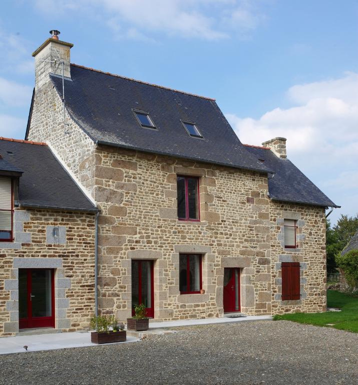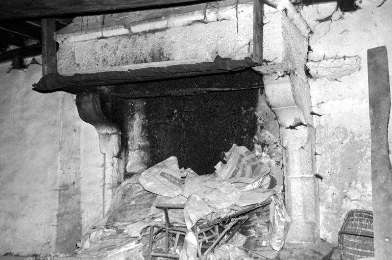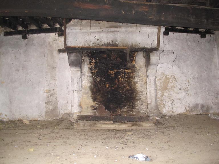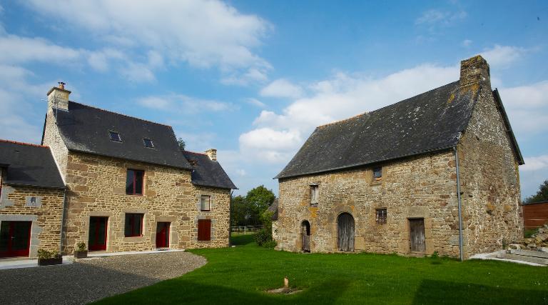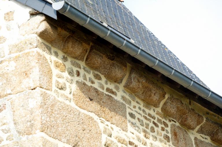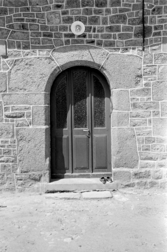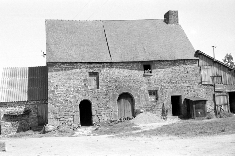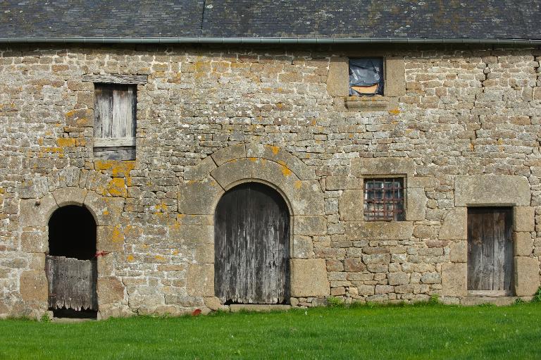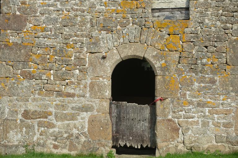 Deux portes sont en plein cintre et la dernière est rectangulaire. La première porte, au nord, donnait sur l'étable, elle est en plein cintre à simple rouleau, surmontée d'un arc de décharge à claveaux. La seconde, au milieu, est plus grande et aussi en plein cintre, elle donne sur le logis. Elle est aussi moulurée d'un tore et en plein cintre mais à double rouleau sur le dessus. La troisième porte, au sud, donne également sur le logis. Elle est rectangulaire et chanfreinée, et légèrement plus petite que les deux autres. Entre les deux portes en plein cintre au niveau de l'étage se trouve un percement par lequel on accédait au grenier au moyen d'une échelle. Ce percement est rectangulaire, son appui est en pierre de taille, contrairement à son linteau qui est en bois et aux encadrements qui sont en moellon de granite.