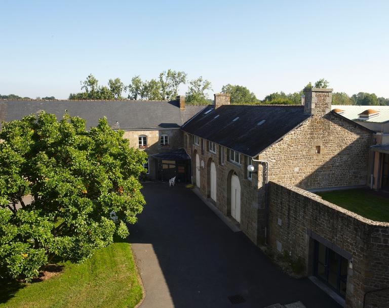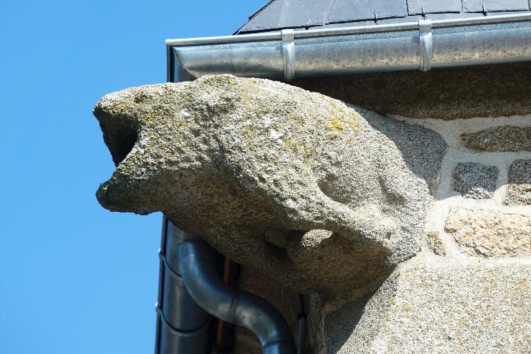 Dans sa cour se trouvait une chapelle, dont il ne reste qu'une jolie porte flamboyante, accostée de pinacles élevés et sommée d'un fronton, actuellement brisé, qui présentait les armes des Pinels, seigneurs de Chaudeboeuf du milieu du 11e siècle au milieu du 17e siècle. Cette chapelle a été presque entièrement refaite au 18e siècle et bénite en 1757, elle est construite en pierres appareillées et se termine par un grand pignon demi-circulaire avec un petit campanile en pierre à une arche et un grand perron lourd et droit qui donne accès à une terrasse. Dans le chœur se trouvait autrefois deux tables de marbre. La première était gravée de l'inscription suivante : " çy dessous repose le cœur de messir du Parcq-Porée, Chevalier, Seigneur du Parcq, Chaudeboeuf, Launay-Roumoulin, (...), çy devant conseiller au Parlement de Bretagne, décédé le 28 mai 1712, âgé de 77 ans, priez Dieu pour son âme."