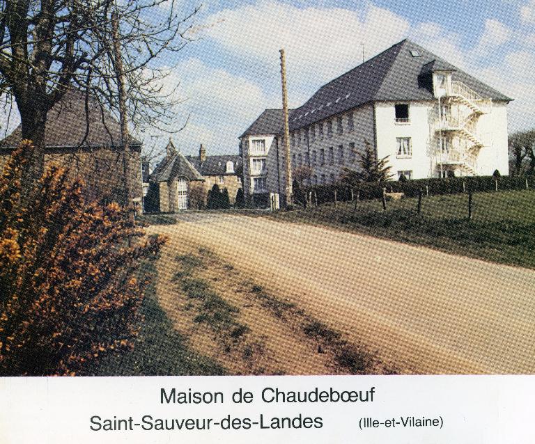 Au 11e siècle, Chaudeboeuf est le site d'une motte féodale, encore signalée comme telle en 1540. Il est ensuite remplacé par un premier château, puis par l'actuel, construit à la fin du 16e siècle. Construit par les Porée du Parc, le château est alors une vaste bâtisse de grand appareil. Il est entouré de douves. Au nord, il présente un escalier en double perron. Au sud, du côté de la cour intérieure, il est flanqué de deux tours peu saillantes. Les gerbières sont surmontées de frontons arrondis, et le toit porte une lanterne avec cloche. La dernière famille propriétaire du château, au 19e siècle, est celle des La-Haye-Saint-Hilaire. Le 6 juillet 1863, la comtesse de Saint-Hilaire, veuve et sans descendance, fait don du château et de ses dépendances à la congrégation des sœurs adoratrices de la Justice de Dieu, afin de créer un hospice. A cette date le domaine comprend le château principal, une aile latérale en mauvais état, une ancienne ferme, les écuries et la chapelle. Plus tard son créés une buanderie, une boulangerie, un pressoir à cidre et un potager permettant à l'hospice de vivre en autarcie. L'hospice possède également son propre cimetière.