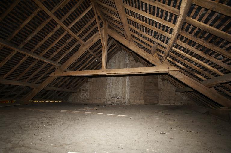 Le toit à long pans non brisés est couvert en ardoise, il est à pignons couverts avec une croupe à l'est.