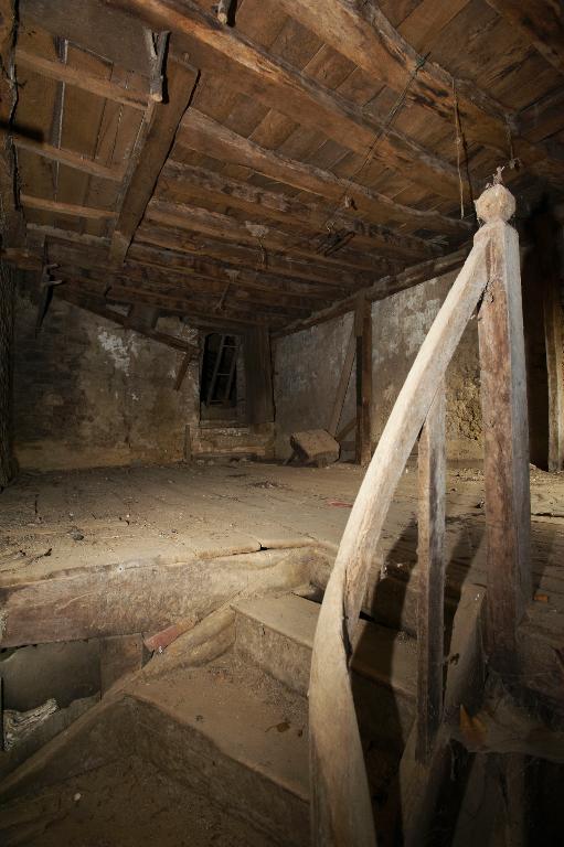 Dans l'ancienne habitation, à l'ouest, il y a une pièce par niveau dont une chambre à l'étage. En 1969, au rez-de-chaussée le mobilier ancien était conservé, adossé au mur nord on trouvait deux lits et une horloge. Une grande cheminée en granite avec linteau monolithe et corniche est conservée dans le logis.
