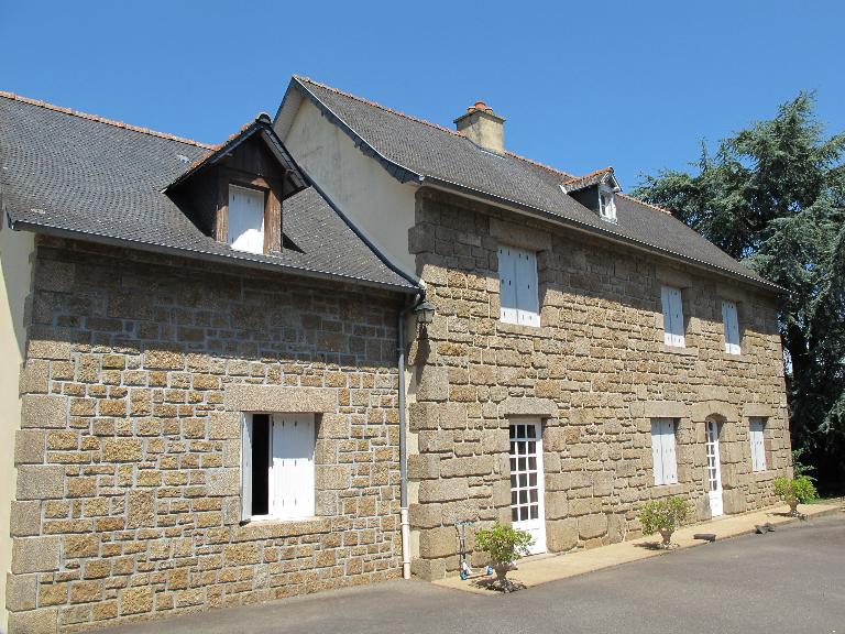 Maison isolée dont la façade antérieure est orientée au sud. Elle est construite en granite moyen et grand appareil. De plan rectangulaire, elle se compose d'un rez-de-chaussée et de combles à surcroît. L'élévation est sans travée, très peu ajourée, on y trouve une porte en anse de panier moulurée d'un cavet et une fenêtre à appui saillant mouluré, à décor de boules.