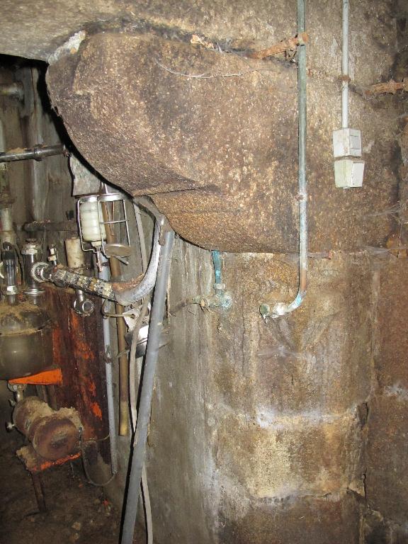- La cheminée 3 est située à l'étage sur l'actuel refend qui est l'ancien pignon est. Elle est en granite, de type engagé. Son linteau est à crossettes et sa corniche est moulurée (cavet et bandeau). Les consoles sont moulurées (quart de rond, cavet, quart de rond, bandeau) et les piédroits sont décorés de motifs torsadés sur les angles. La largeur de la cheminée est de 2.5m.