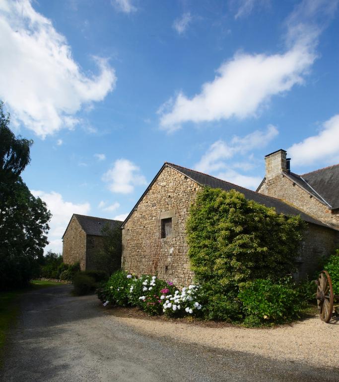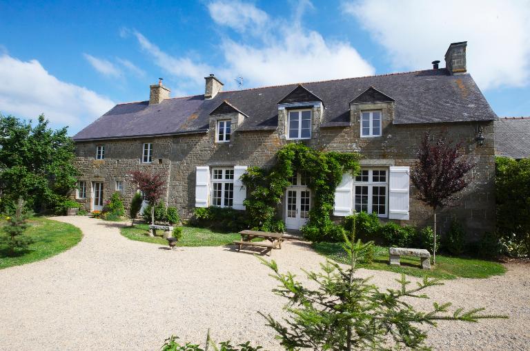 La toiture est à deux versants sur les deux ailes, et de même hauteur. Trois souches de cheminée agrémentent la toiture ; les deux souches de la partie Est de l'aile principale sont en grand appareil de granite, avec corniche saillante. La couverture est en ardoise.