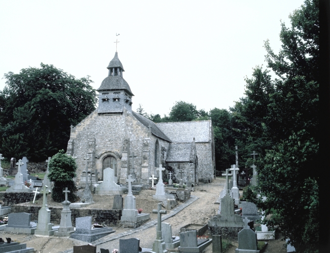Le gros-oeuvre de la nef date en partie du 12e siècle, il a été remanié aux 15e et 16e siècles. L'église est flanquée au nord d'une chapelle seigneuriale et au sud d'un petit porche dans les murs duquel on a intégré plusieurs dalles funéraires. Au début du 18e siècle : le choeur, la chapelle du nord ont été remaniés et une autre chapelle au sud a été construite afin d'obtenir un édifice en forme de croix latine. Inscriptions : 1707, 1711. Croix monumentale de 1629.