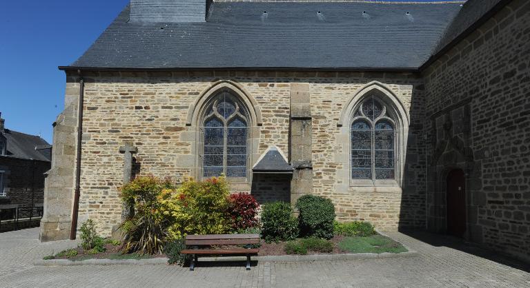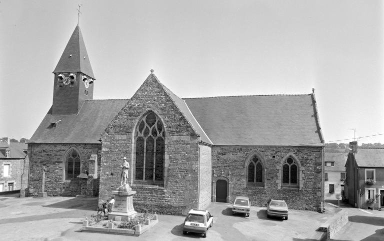 A l'origine priorale, l'église dépendait de l'abbaye Saint-Georges de Rennes. Elle remonte pour sa partie la plus ancienne au 15e siècle (vestiges dans le massif occidental) . En majeure partie du 16e siècle (chapelle nord datée 1556), elle a été modifiée au 17e siècle : en 1629 l'ancienne chapelle seigneuriale située au nord du choeur est transformée en sacristie, puis en 1641 la chapelle sud est reprise en réemployant la porte du 16e siècle. La façade occidentale a également été reprise en 1777 (porte la date). Des remaniements de détails sont également à signaler au 19e siècle.