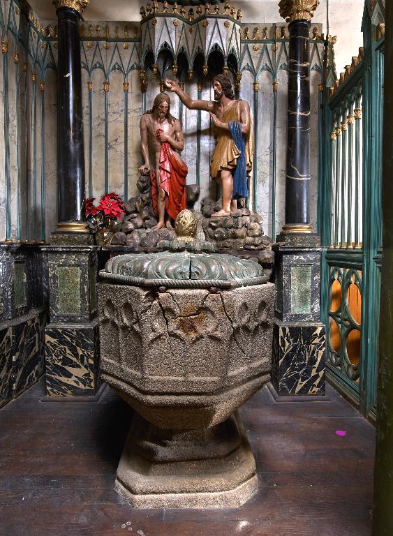 - Baldaquin et couvercle des fonts baptismaux (18e siècle); classement MH 1919.